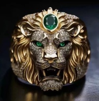 5.00Ct Oval Cut Lab Created Emerald Men's Lion King Ring 14K Yellow Gold Finish